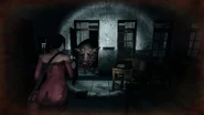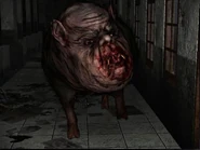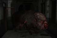 Linda encounters the Babi Ngepet in the north-east hallway from the exit door on the first floor. She finds it laying on the ground blocking her way. It will stand up and attack her when she tries to take the school key from its neck. After Linda defeats the Scissor Phantom and obtains the scissors, the Babi Ngepet can be found sleeping on the ground in a corner of the room with collapsed walls. With the scissors in her inventory, she then can cut the key loose from the Babi Ngepet's neck to make her way towards her escape.