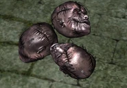 The Gundul Pringis takes the form of a hideous human head with crazed eyes. The skin appears decayed with numerous stitching holding the head intact. Their teeth are more or less rotten. They mainly travel by rolling around, causing unease as Linda walks by.