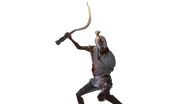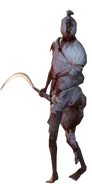 In the game, there are two types of Pocong Warriors. The first one is holding a sickle with his right hand. He wears a rather clean shroud with his left hand wrapped tightly. He moves very slowly but has more life span. The second one is holding a machete with his left hand. He wears a dirty shroud with his right hand wrapped tightly. He moves very aggressively but has a short life span.