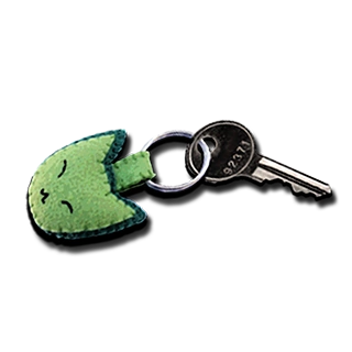 The small key is a key attached to a green felt cat key chain. It's used to open the closet leading to nursery room.